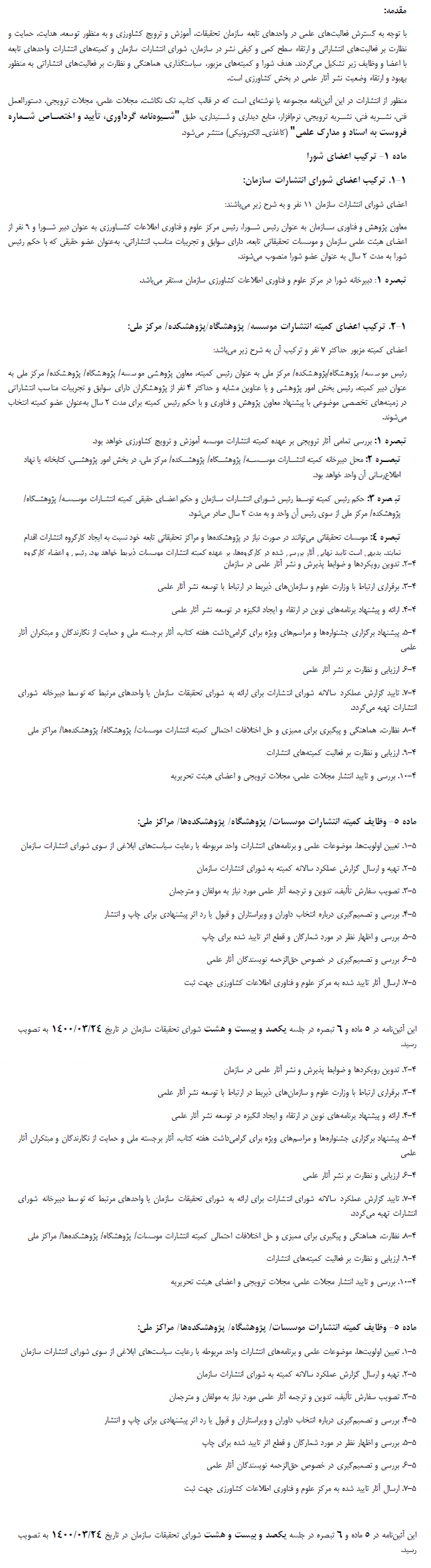 •   مدیریت دبیرخانه شورای انتشارات سازمان و تدوین شیوه‌نامه‌ها و ضوابط انتشاراتی