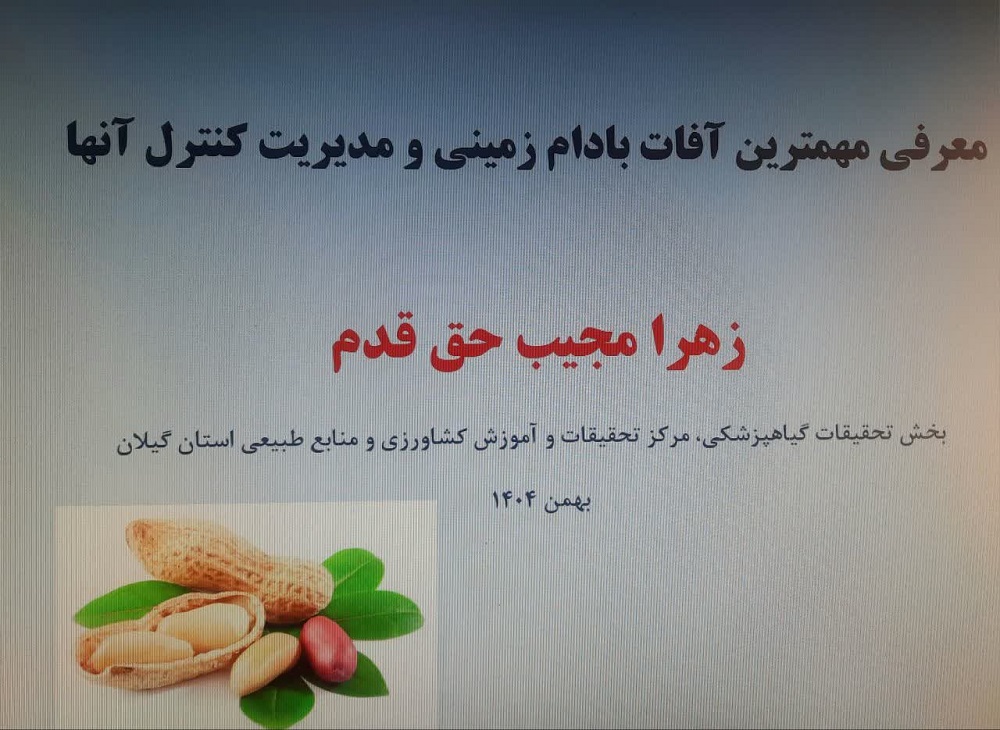 این وبینار فرصتی بود تا نتایج نهایی پروژه تحقیقاتی گستردهای که توسط ایشان در استان، اجرا شده بود، به صورت عمومی ارائه گردد. محور اصلی این ارائه، شناسایی دقیق و معرفی آفات درجه یک و مهمی بود که محصول بادام زمینی در این استان را تهدید میکنند و همچنین ارائه راهکارهای عملی و مدیریتی مؤثر برای کنترل این آفات.