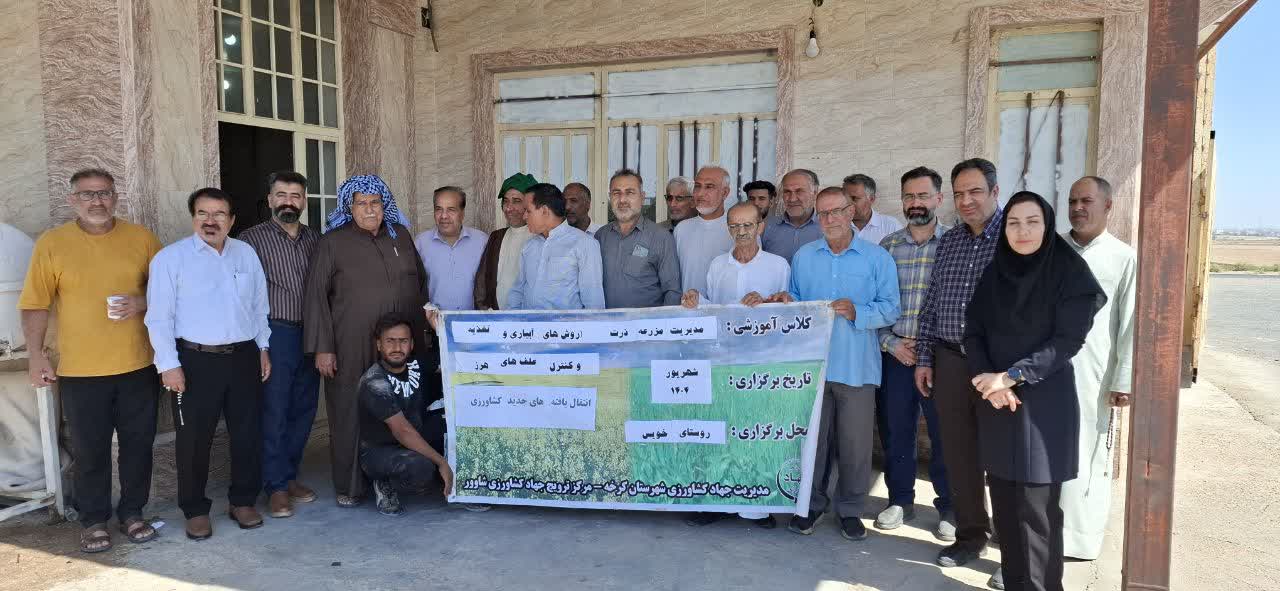 به گزارش روابط‌عمومی مرکز تحقیقات و آموزش کشاورزی و منابع طبیعی صفی‌آباد دزفول، در راستای استمرار انتقال‌یافته‌های کشاورزی و مدیریت مزرعه ذرت و سورگوم روز چهارشنبه مورخ ۲۶ شهریور، اعضای هیأت علمی مرکز تحقیقات و آموزش کشاورزی و منابع طبیعی صفی‌آباد دزفول در مرکز جهاد کشاورزی شاوور روستای خویس شهرستان کرخه حضور یافتند.
