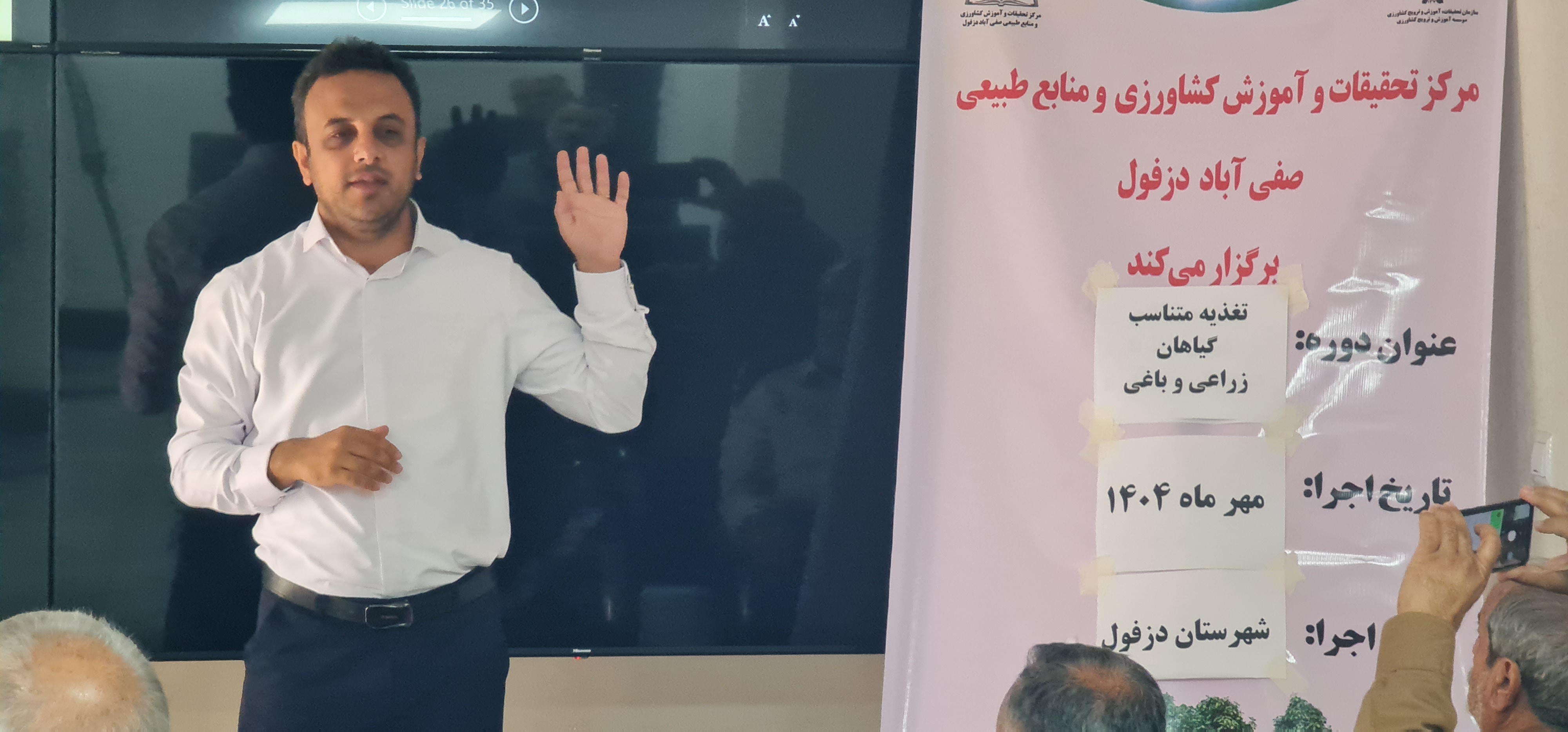به گزارش روابطعمومی مرکز تحقیقات و آموزش کشاورزی و منابع طبیعی صفیآباد دزفول، به همت اداره آموزش بهرهبرداران و مشاغل کشاورزی مرکز، در روز سهشنبه مورخ ۱۵ مهر دوره آموزشی «تغذیه مناسب گیاهان زراعی و باغی» با تدریس علیاکبر زارع؛ عضو هیأت علمی مرکز تحقیقات و آموزش کشاورزی و منابع طبیعی صفیآباد دزفول و با همکاری شرکت بهرهبرداری از شبکه آبیاری ناحیه شمال خوزستان با موفقیت برگزار شد.