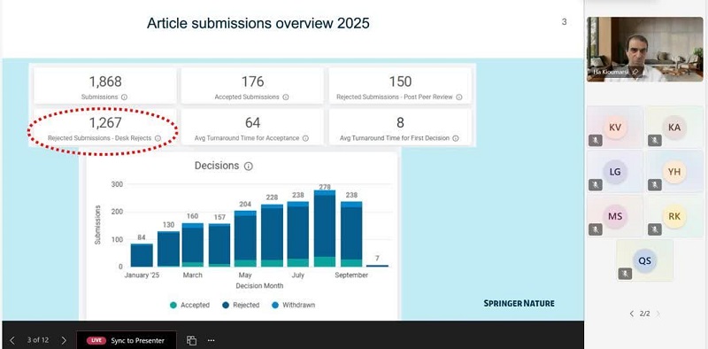 نشست آموزشی انتشارات معتبر اسپرینگر نیچر به‌صورت مجازی و از طریق پلتفرم مایکروسافت تیمز برگزار شد. این سخنرانی نقش مؤثری در روشن‌سازی ابعاد مختلف تحولات اخیر در حوزه انتشارات علمی ایفا کرد.