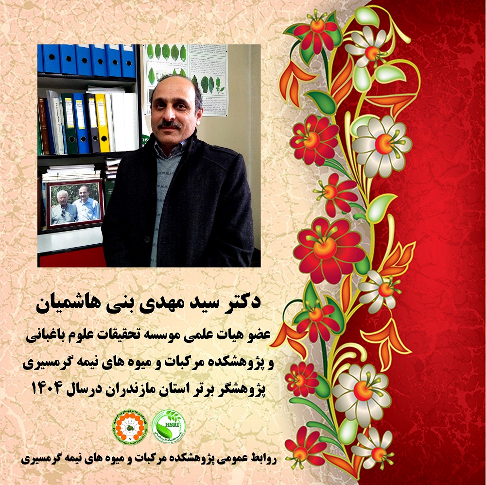 روابط عمومی پژوهشکده مرکبات و میوههای نیمهگرمسیری ضمن تبریک این موفقیت به دکتر سید مهدی بنیهاشمیان، سلامتی و توفیقات روزافزون ایشان را در مسیر خدمت به پیشرفت علمی کشور از درگاه خداوند متعال خواستار است.
