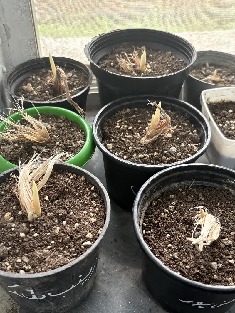 پیازهای زعفران در گلدان‌های دانش‌آموزان جوانه زدند؛