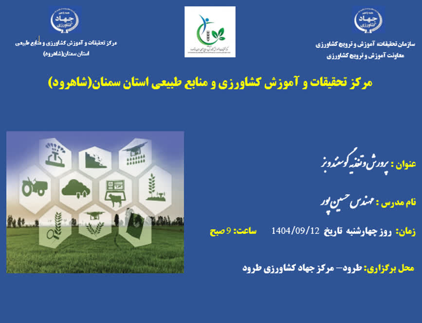 به گزارش روابطعمومی مرکز تحقیقات و آموزش کشاورزی و منابع طبیعی استان سمنان (شاهرود)، کارگاه آموزشی «پرورش و تغذیه گوسفند و بز» با تدریس حسینپور، ویژه بهرهبرداران و فعالان حوزه دامداری، در مرکز جهاد کشاورزی طرود برگزار شد.