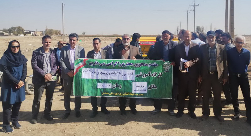 در ادامه برنامه، کارگاه آموزشی ـ ترویجی با همکاری شرکت ماشین زراعت همدان برگزار شد. محورهای اصلی این کارگاه شامل مصرف بهینه آب در شرایط تغییر اقلیم، رعایت الگوی کشت مناسب، اجتناب از کشت محصولات تدخینی، کاهش سطح زیر کشت محصولات پرآب‌بر و ترویج کشت‌های کم‌آب‌بر بود. در این بخش، توصیه‌های علمی و عملی متناسب با شرایط منطقه برای بهره‌برداران ارائه گردید.