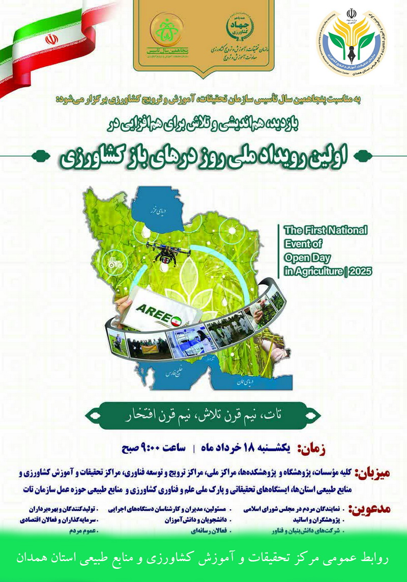 به گزارش روابط عمومی مرکز تحقیقات وآموزش کشاورزی و منابع طبیعی استان همدان، در روز یکشنبه ۱۸ خردادماه سال جاری، نخستین رویداد ملی روز درهای باز کشاورزی با حضور گرم کشاورزان و بهرهبرداران در ایستگاه تحقیقاتی اکباتان، باغ گیاهان داروئی ابن سینا و ایستگاه تحقیقاتی انگورملایر برگزار شد. این رویداد به منظور بزرگداشت پنجاهمین سال تأسیس سازمان تحقیقات، آموزش و ترویج کشاورزی و با هدف معرفی فعالیتها و دستاوردهای جدید در حوزه کشاورزی برگزار شد.