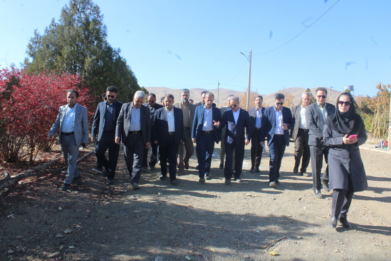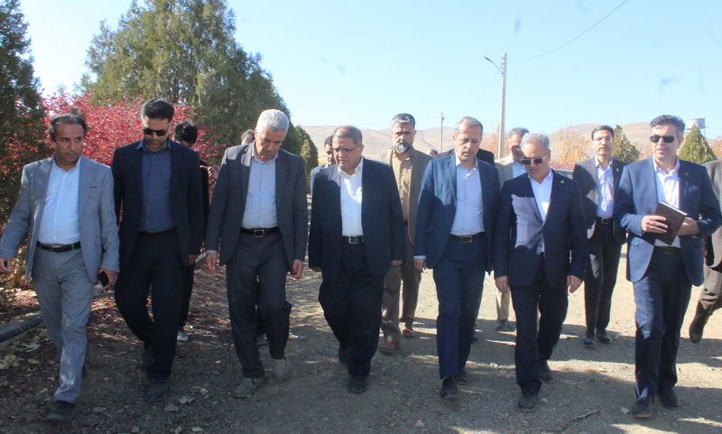 بازدید معاون وزیر جهاد کشاورزی و رییس سازمان تات و هیات همراه از اراضی ایستگاه تحقیقاتی گردوی کرزان در شهرستان تویسرکان