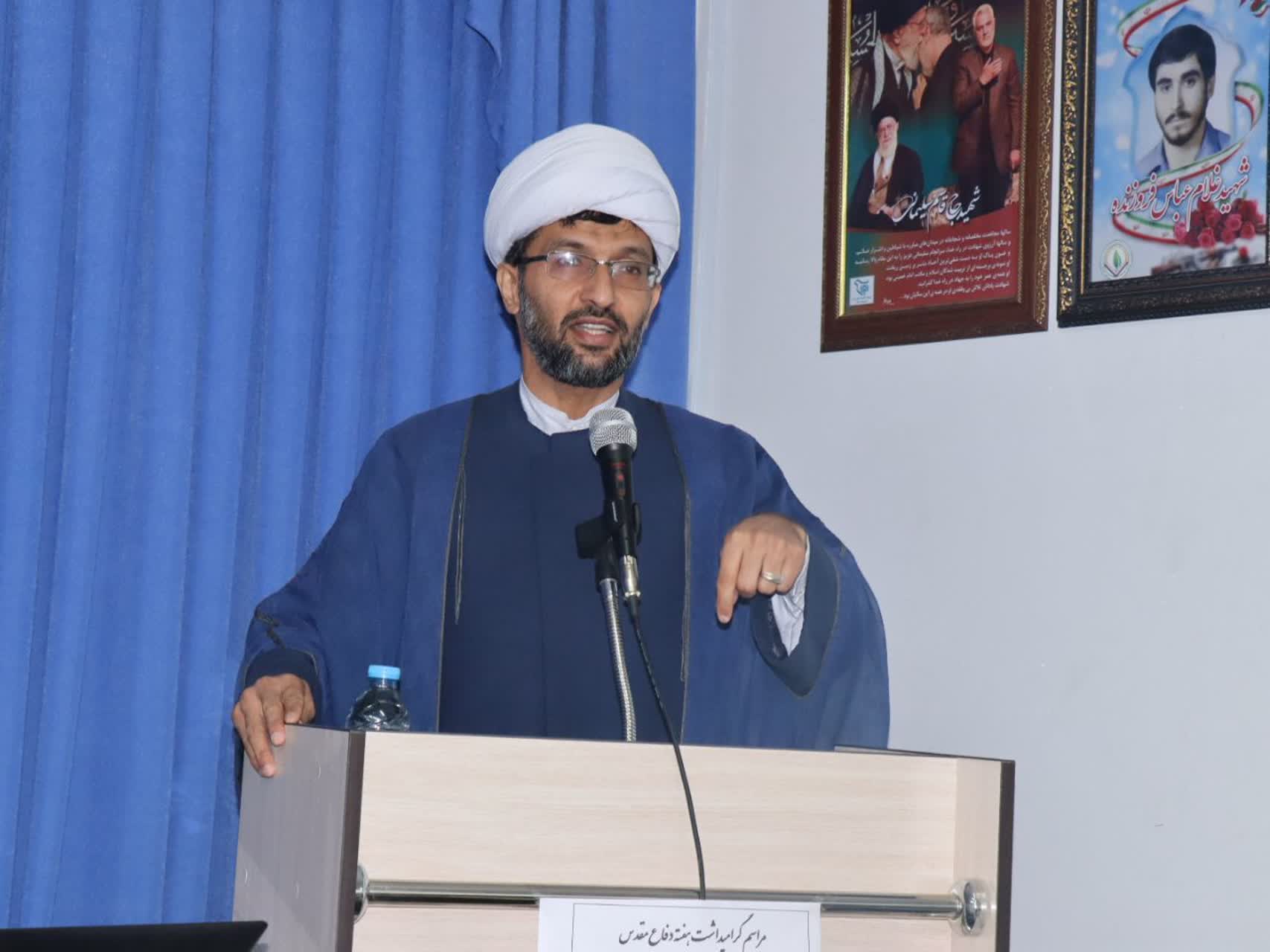 وی با اشاره به سختی‌های دوران جنگ و رشادت‌های رزمندگان، گفت: «امیرالمومنین نیز در مسیر حق با سختی‌های فراوانی روبرو بود و امروز مقام معظم رهبری نیز با دشواری‌های بسیاری مواجه است.» او مسئولیت همه آحاد جامعه را دفاع از کشور، خون شهدا و حمایت از حرم و ولایت دانست.