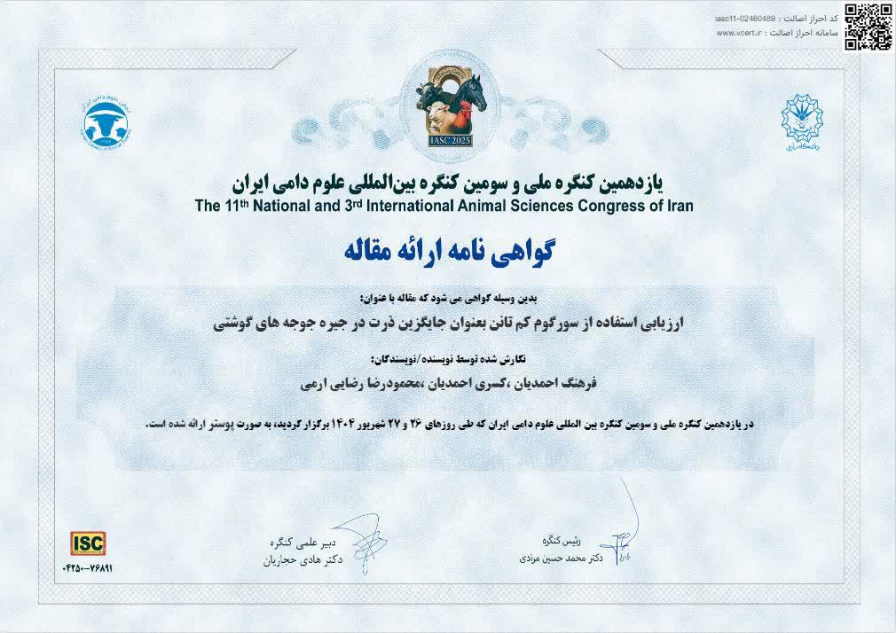 ارائه دو مقاله علمی در کنگره ملی و بین‌المللی علوم دامی ایران توسط پژوهشگران بخش علوم دامی مرکز
