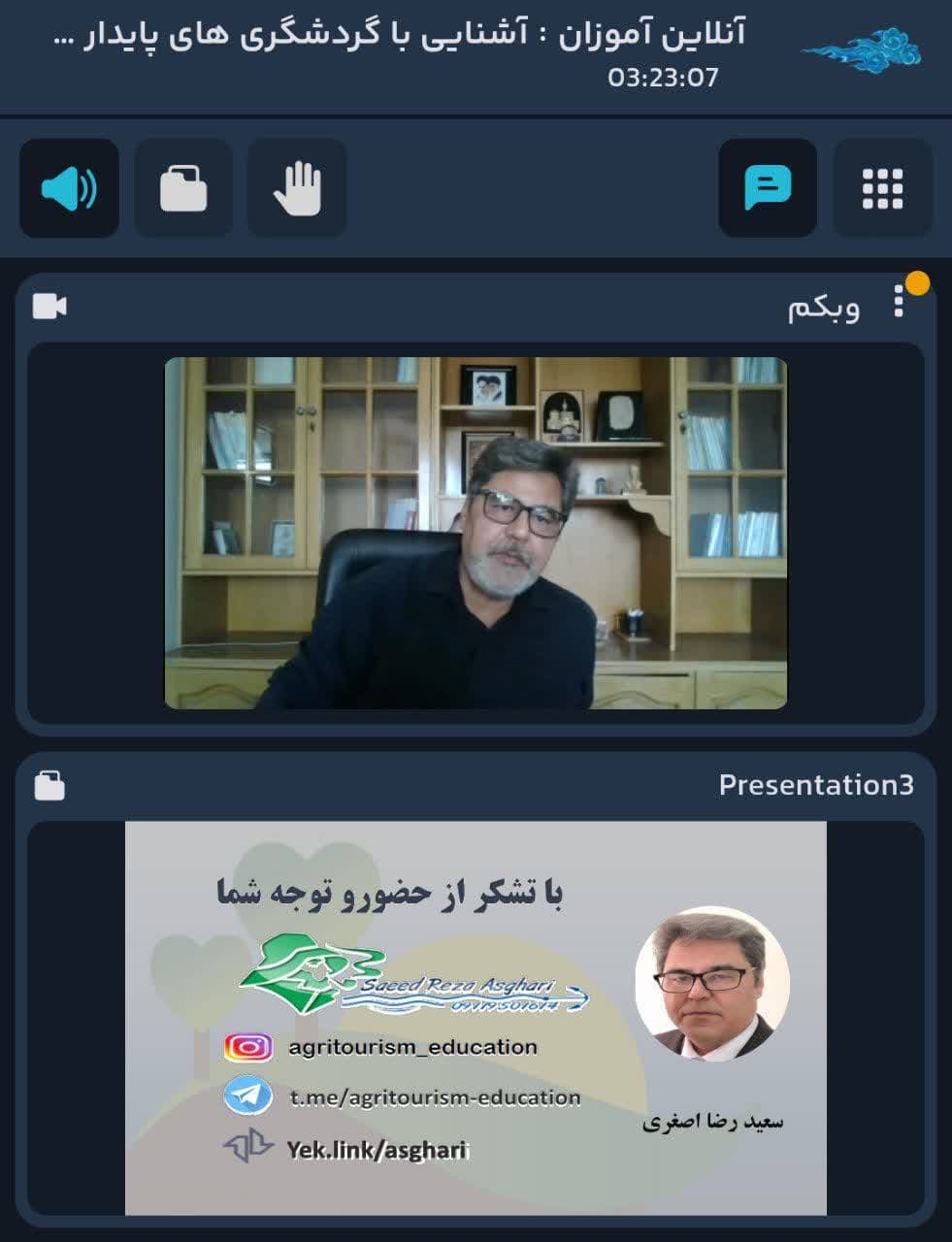 در این دوره، دکتر سعیدرضا اصغری مباحثی پیرامون اصول گردشگری پایدار و نقش گردشگری روستایی و عشایری در توسعه محلی را ارائه کرد.