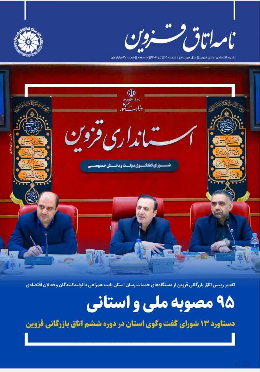 چاپ ششمین مقاله از محقق مرکز تحقیقات کشاورزی در نشریه « نامه اتاق قزوین» شماره ۶۵