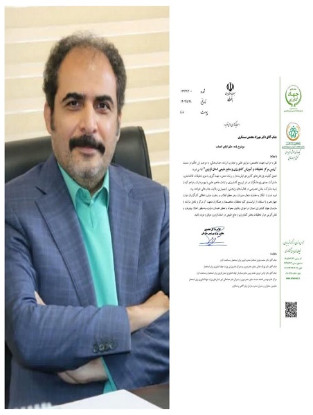 طی حکمی از سوی دکتر غلامرضا گل محمدی ؛ معاون وزیر و رئیس سازمان تات، جناب آقای دکتر مهرزاد محصص مستشاری در سمت رئیس مرکز تحقیقات و آموزش کشاورزی و منابع طبیع استان قزوین ابقاء شد