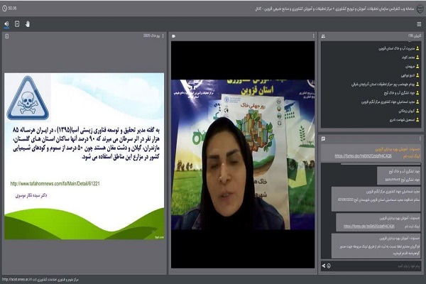 مهندس خسروی نژاد محقق بخش تحقیقات خاک و آب مرکز تحقیقات کشاورزی قزوین ،در این وبینار یافته های علمی خود در زمینه "تأثیر کمپوست خانگی در ارتقای سلامت خاکهای شهری" ارائه کردند