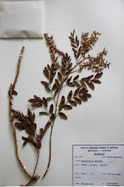 نمونه هرباریومی گیاهان شیرین بیان جمع آوری شده از روستای دیکین در 30 سال قبل |