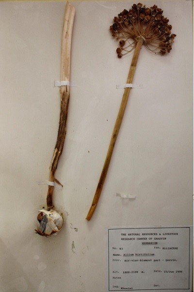 نمونه هرباریومی گیاه موسیر جمع آوری شده از هیرو ویار در 30 سال قبل |