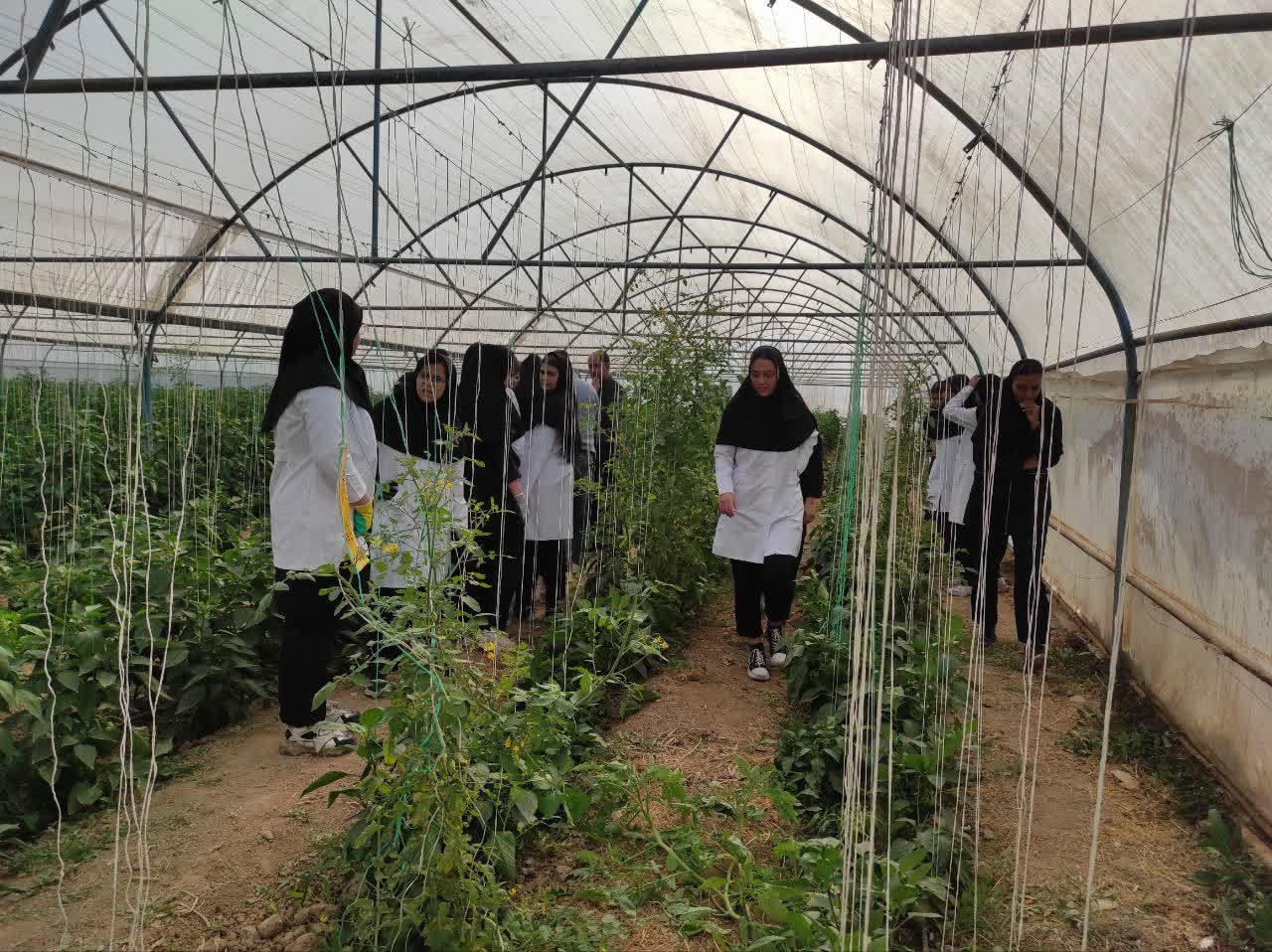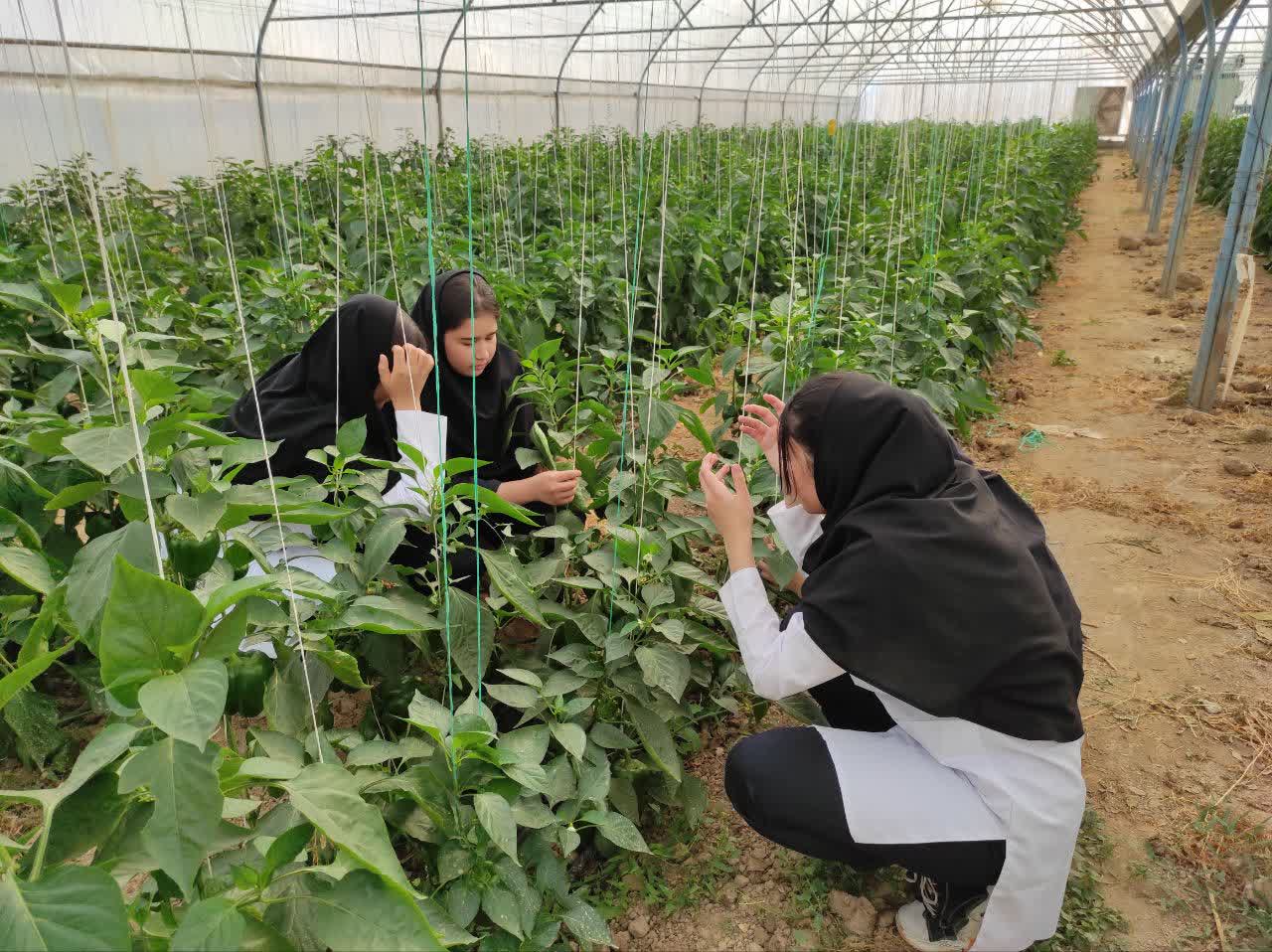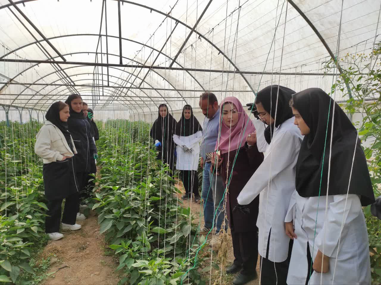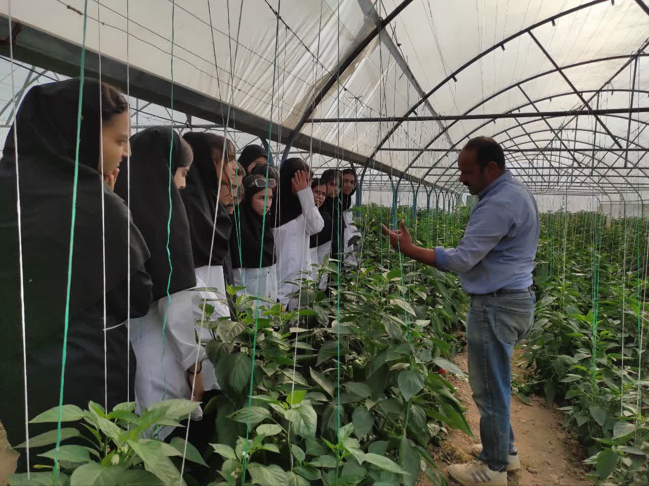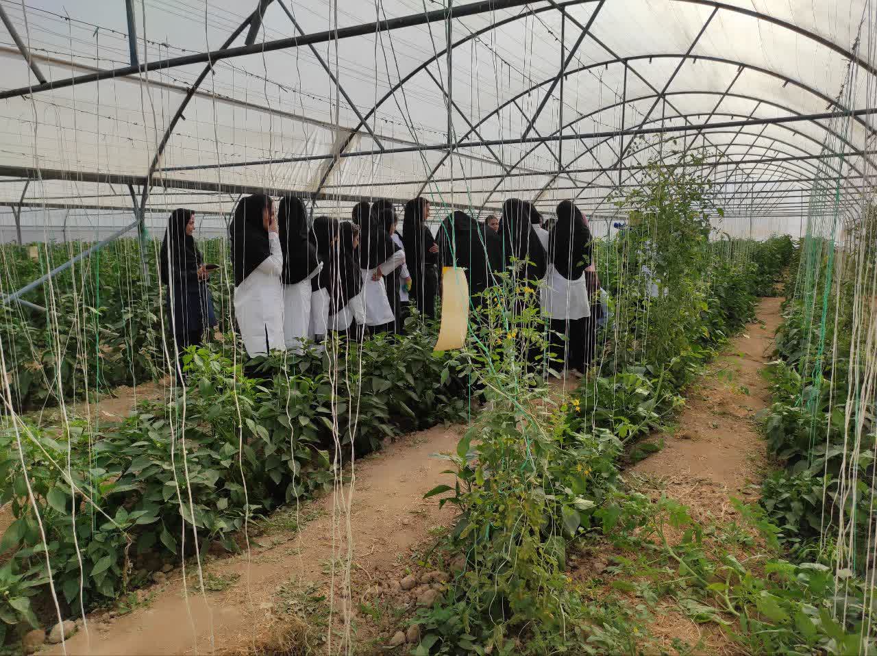 بازدید هنرجویان دختر هنرستان تحت پوشش مرکز از گلخانه تولید فلفل‌دلمه‌ای