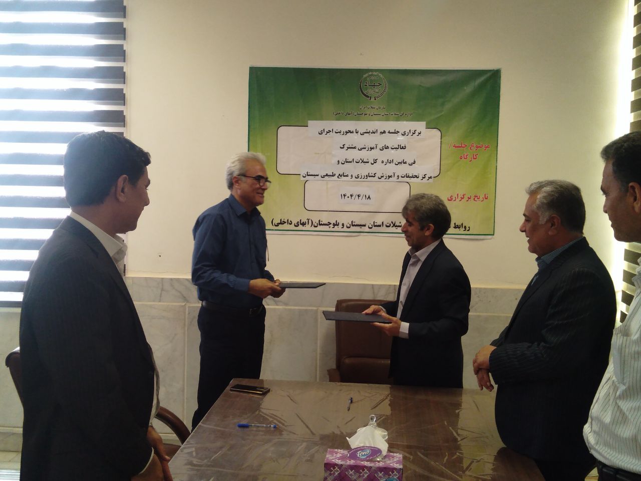 به گزارش روابط عمومی مرکز تحقیقات و آموزش کشاورزی و منابع طبیعی سیستان ،به‌منظور ارتقاء سطح آموزش و بهره‌وری در حوزه‌های کشاورزی و شیلات و در راستای توسعه پایدار اشتغال در جوامع روستایی، جلسه هم‌اندیشی مشترک بین اداره‌کل شیلات سیستان و مرکز تحقیقات و آموزش کشاورزی و منابع طبیعی سیستان با حضور مدیرکل شیلات سیستان، رئیس مرکز، معاون تولید و بهره‌برداری آبزیان، رئیس گروه ترویج شیلات و آبزیان و جمعی از محققین و مسئولان آموزشی، در محل اداره‌کل شیلات سیستان برگزار شد.