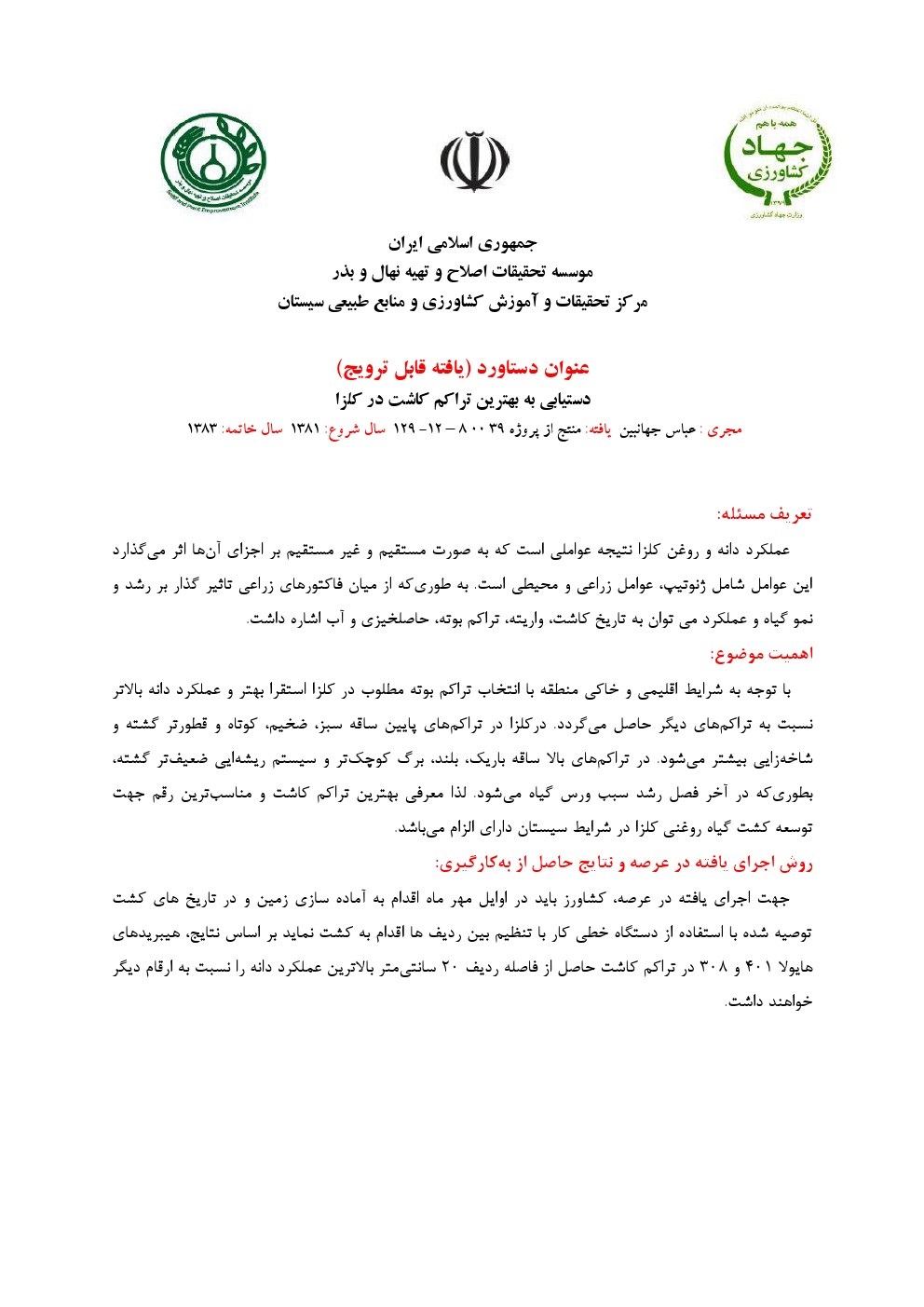 معرفی بهترین آرایش کاشت و رقم در زراعت کنجد در منطقه سیستان