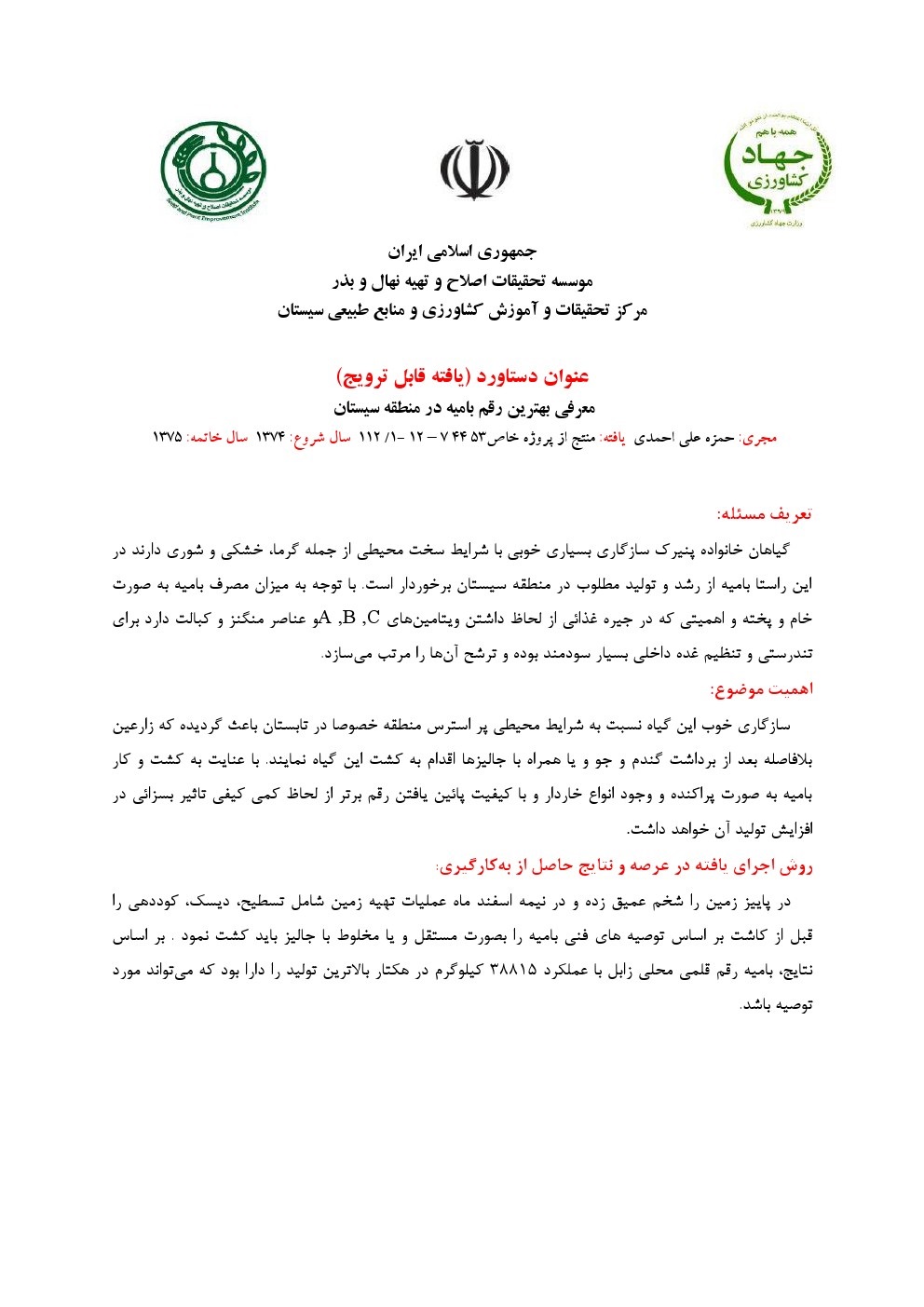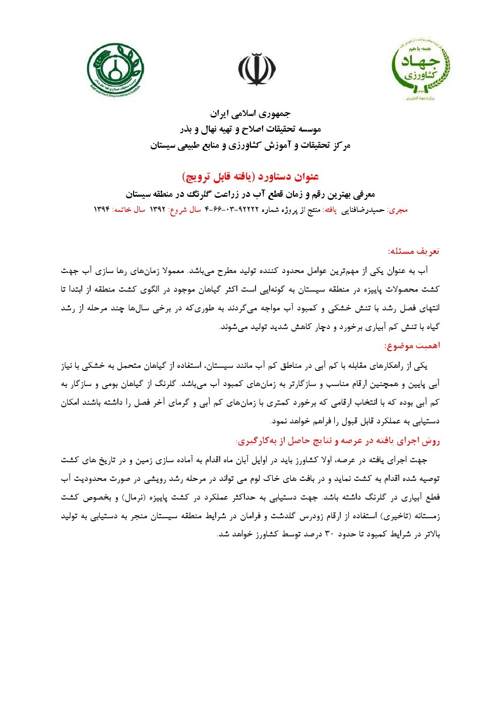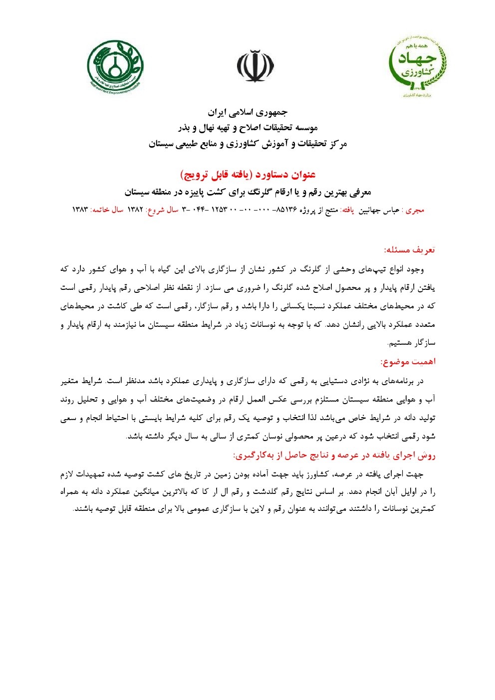 معرفی بهترین رقم و یا ارقام گلرنگ برای کشت پاییزه در منطقه سیستان