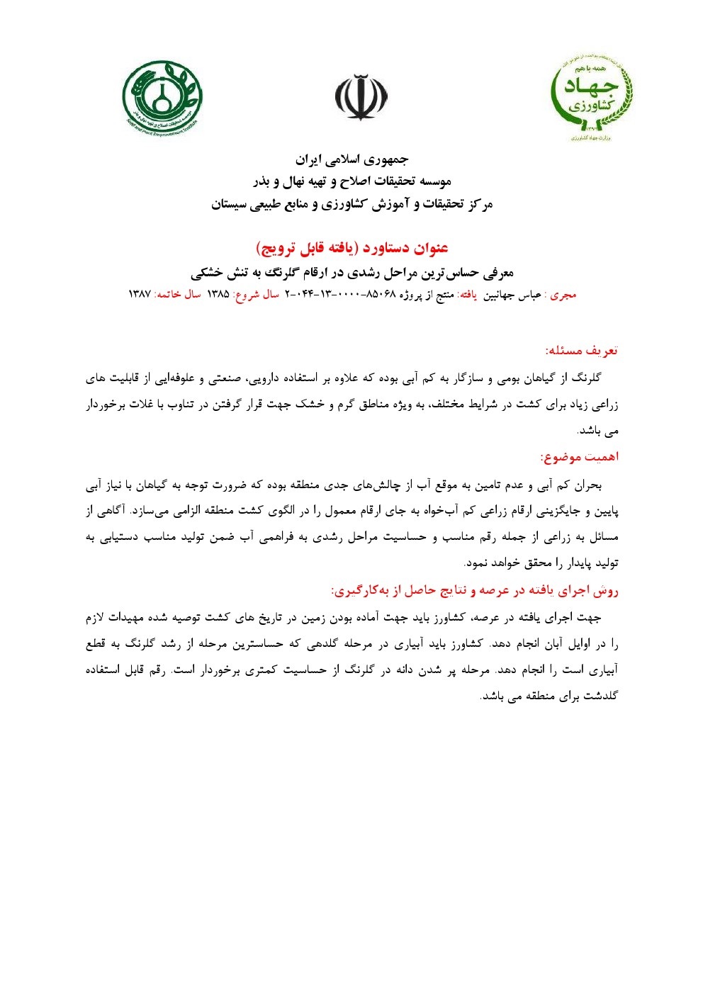 معرفی حساس­ترین مراحل رشدی در ارقام گلرنگ به تنش خشکی