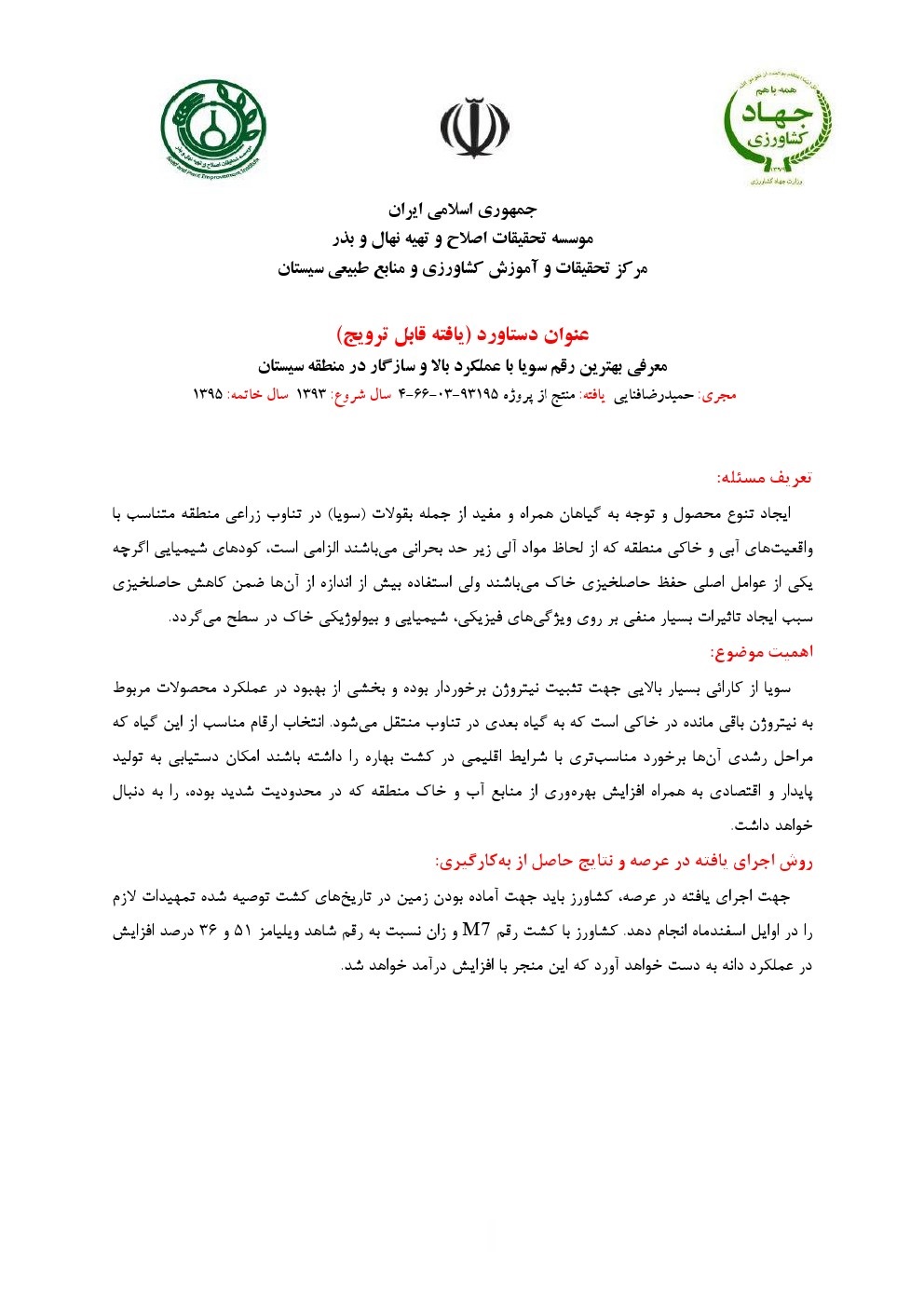 معرفی بهترین رقم سویا با عملکرد بالا و سازگار در منطقه سیستان
