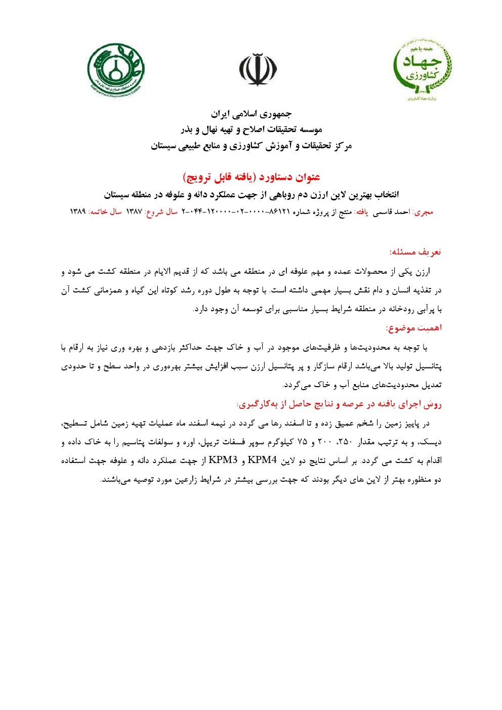 انتخاب بهترین لاین ارزن دم روباهی از جهت عملکرد دانه و علوفه در منطقه سیستان