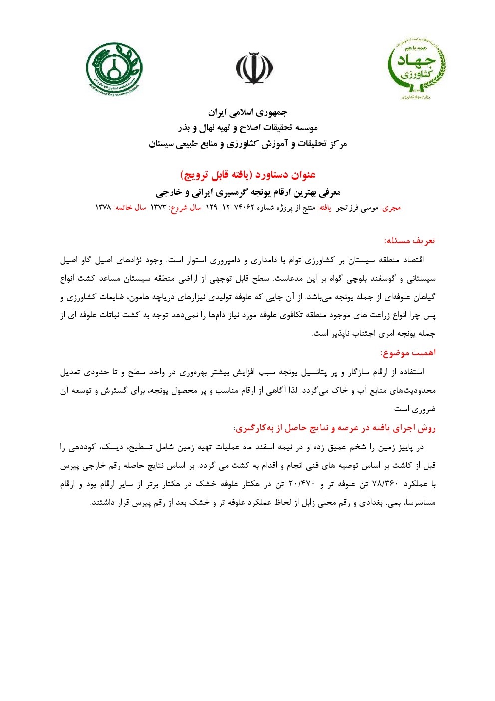 دستیابی به بهترین توده و رقم در توده های بومی خربزه ایرانی