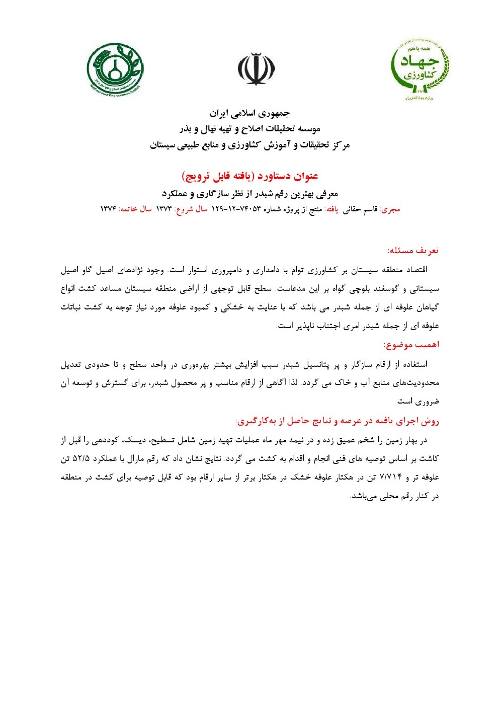 معرفی مناسب ترین تراکم و روش کشت توام خیار و بادمجان در منطقه سیستان