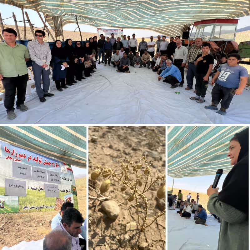 روز سه شنبه مورخ ۷ مرداد ماه 1404 برنامه روز مزرعه سایت نوآور محصولات تناوبی طرح جهش تولید در دیمزارها با محوریت حبوبات در روستای قره آغاج از توابع مرکز جهاد کشاورزی نیک پی با همکاری و هماهنگی مدیریت جهاد کشاورزی شهرستان زنجان با حضور عضو هیئت علمی مرکز و جمعی از کشاورزان و بهره‌بردارن برگزار گردید. در این مراسم سرکار خانم دکتر شبیری با حضور در مزرعه کشاورزان عدس و نخود کار آسیب های عدم رعایت اصول فنی و عملیات کشت نخود و عدس در شرایط دیم (کشت سنتی ، عدم استفاده از دستگاه های کشت مکانیزه ، عدم رعایت تاریخ کشت مناسب و عدم مصرف میزان بذر مناسب) را بر شمرده و  مزیت کشت پاییزه و مبارزه مکانیزه با علف های هرز توضیحاتی را خدمت کشاورزان شرکت کننده در این برنامه ارائه نمودند. در پایان به سوالات کشاورزان پاسخ داده شد.
